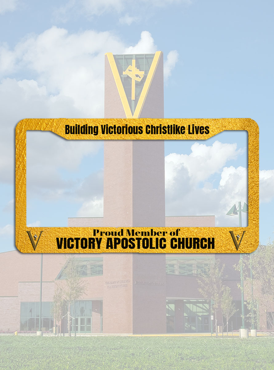 Show your pride and represent Victory wherever you go with the Victory Apostolic Church license plate frame. Featuring the church’s mission, “Building Victorious Christlike Lives,” this bold design makes a statement on the road and beyond. Durable, eye-catching, and faith-centered, it’s the perfect way to carry Victory with you every day.